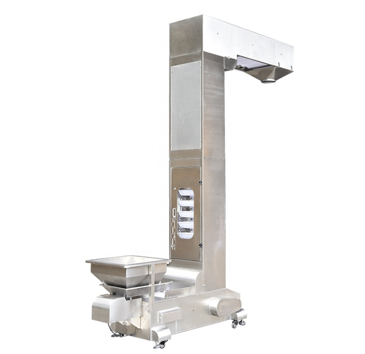 鏈條式Z型輸送機通常配備板鏈或附件鏈條,較高的承載能力和抗沖擊性能。輸送高度范圍可達2-15米以上,常用鏈條寬度為300–600mm,載重能力可達2t/h以上,適用于生產線負荷大、袋體較重或大容量液體袋的液體包裝場景。