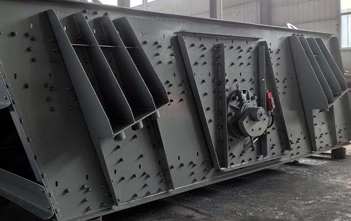 0715型礦用重型振動篩有篩箱、振動電機、減振系統及底架等組成。篩箱由篩框、篩板、襯板等組成。篩機側板采用優質鋼板制作而成,側板與橫梁、激振器底座采用高強度螺栓或環槽鉚釘連接,結構合理,堅固耐用。