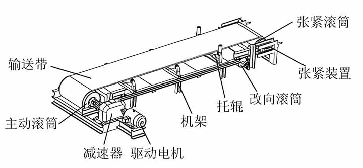 TD 系列帶式輸送機(jī)由驅(qū)動(dòng)、滾動(dòng)、托輥、清掃、卸料、制動(dòng)等部分組成,各部件相互配合完成物料的輸送過(guò)程。